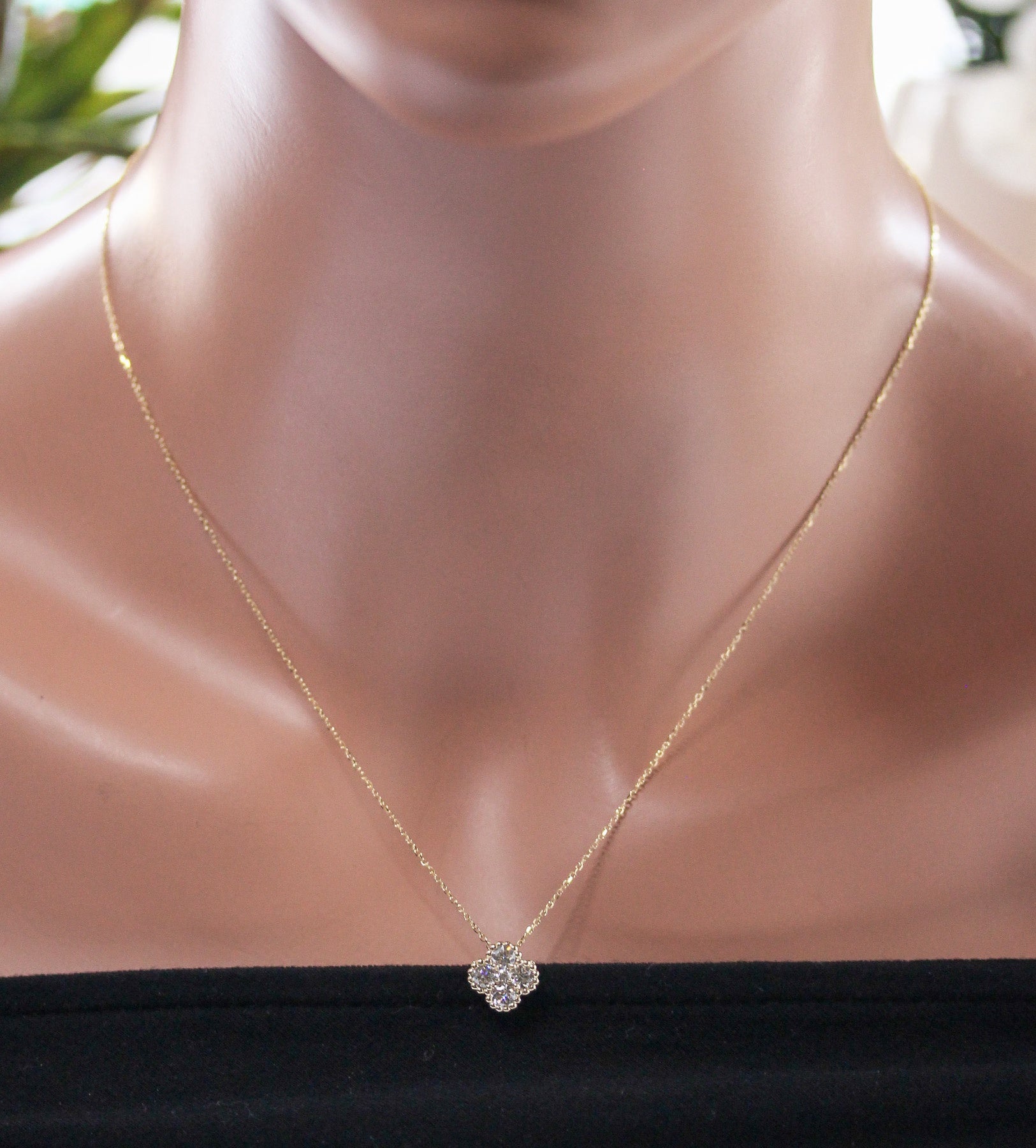 Timeless brilliance meets modern elegance in this 14K yellow gold diamond cluster pendant. Featuring a beautifully arranged cluster of round diamonds totaling 1.00 carat, this piece creates the look of a larger center stone with exceptional sparkle and dimension. A refined essential designed for everyday luxury.