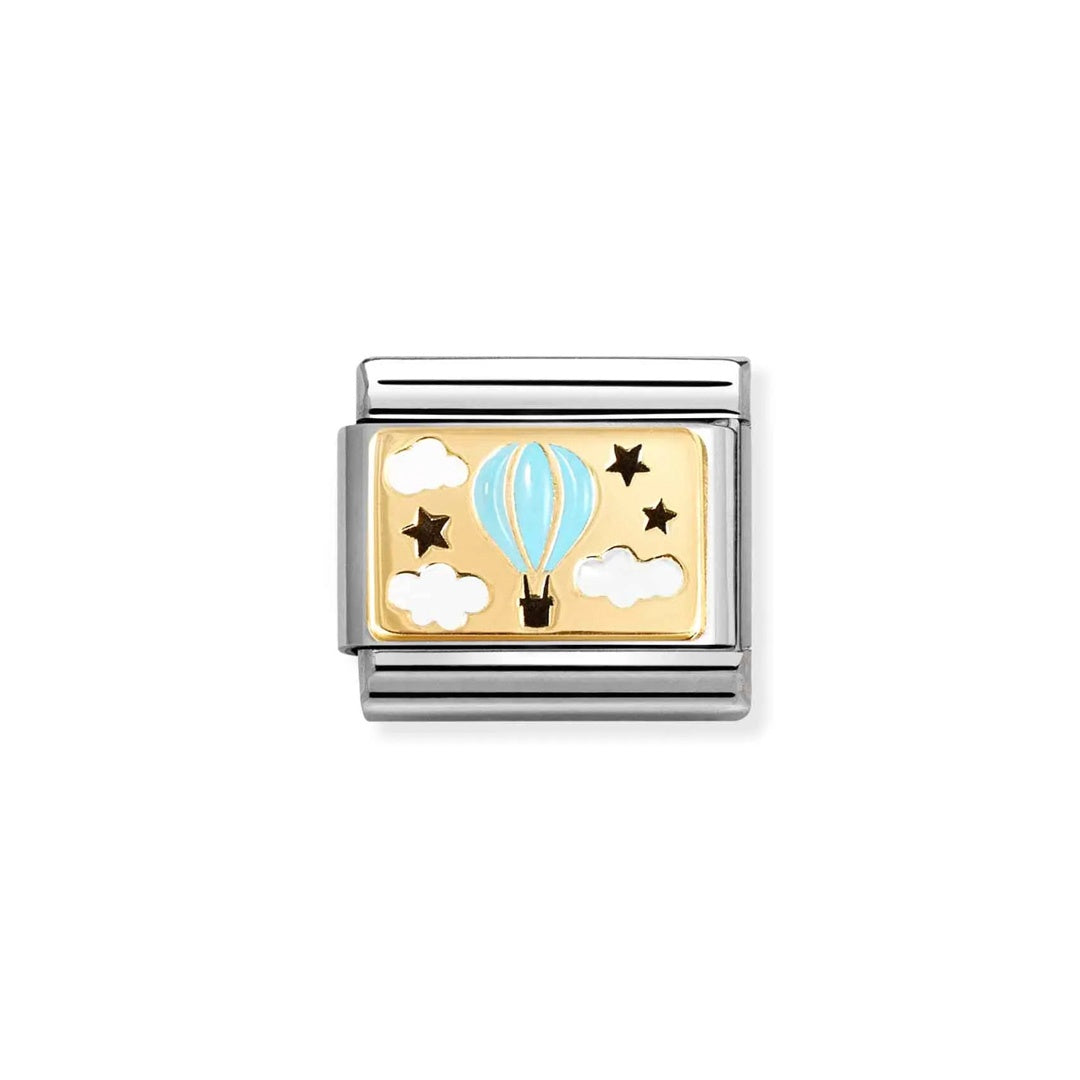 Original Nomination Composable Classic Link for Composable bracelet in stainless steel with bonded yellow plate with Black, Blue and White enamel and Hot Air Balloon symbol. The stork is about to bring a wonderful surprise.... Get ready to celebrate an unforgettable moment with this Composable Link, the perfect way to capture that special feeling, that special moment and treasure it through time.