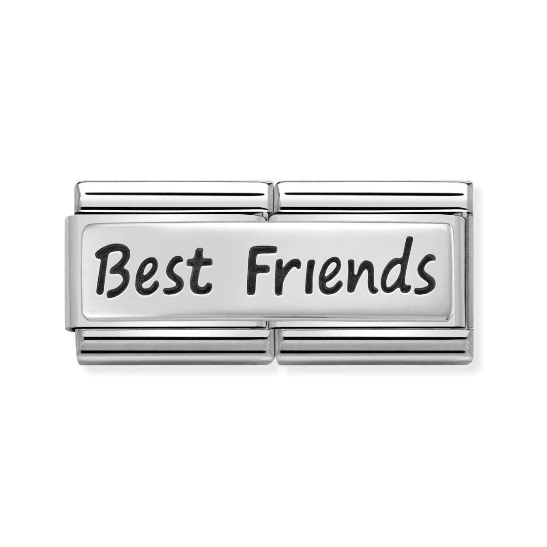 Original Nomination Charm for the Composable Classic bracelet in stainless steel and sterling silver with "Best Friends" written out. A true friend worries about you, is loyal and sincere, supports you, and helps out in times of need. Thank your best friend with this precious Charm, and show them how grateful you are for everything they do!