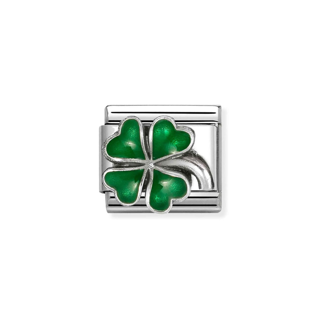 Original Nomination Composable Classic Link for Composable bracelet in stainless steel with silver Clover symbol with vintage effect and Green enamel. This accessory is the perfect good luck charm for any occasion. Make this a meaningful gift for anyone who could use a touch of good fortune.
