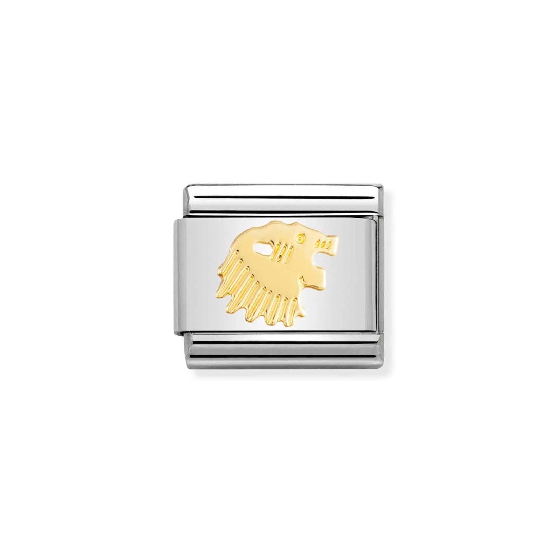 Original Zodiac Charm for Nomination's Composable Classic Bracelet with Leo symbol in stainless steel and bonded yellow gold. All Zodiac symbols are available. Made in Italy. Leo's are creative, popular, and faithful.