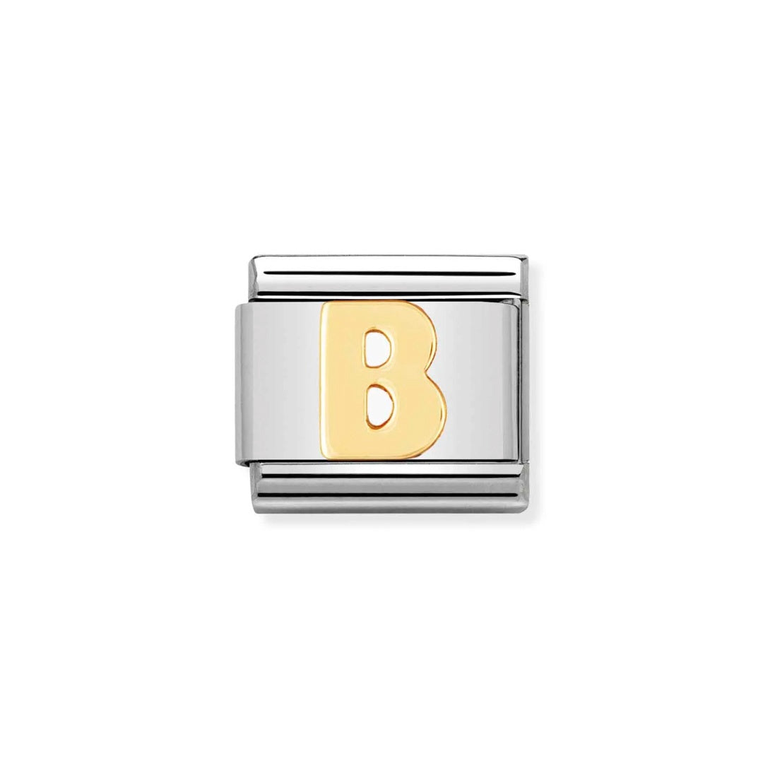 Original Alphabet Charm for Nomination's Composable Classic Bracelet with Letter B in stainless steel and bonded yellow gold. Available Charm versions: A-Z. The perfect birthday gift.