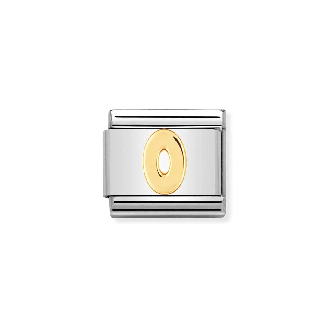 Original Charm for Nomination's Composable Classic Bracelet with Number 0 in stainless steel and bonded yellow gold. Available Charm versions: 0-9. Tell your story with Composable!