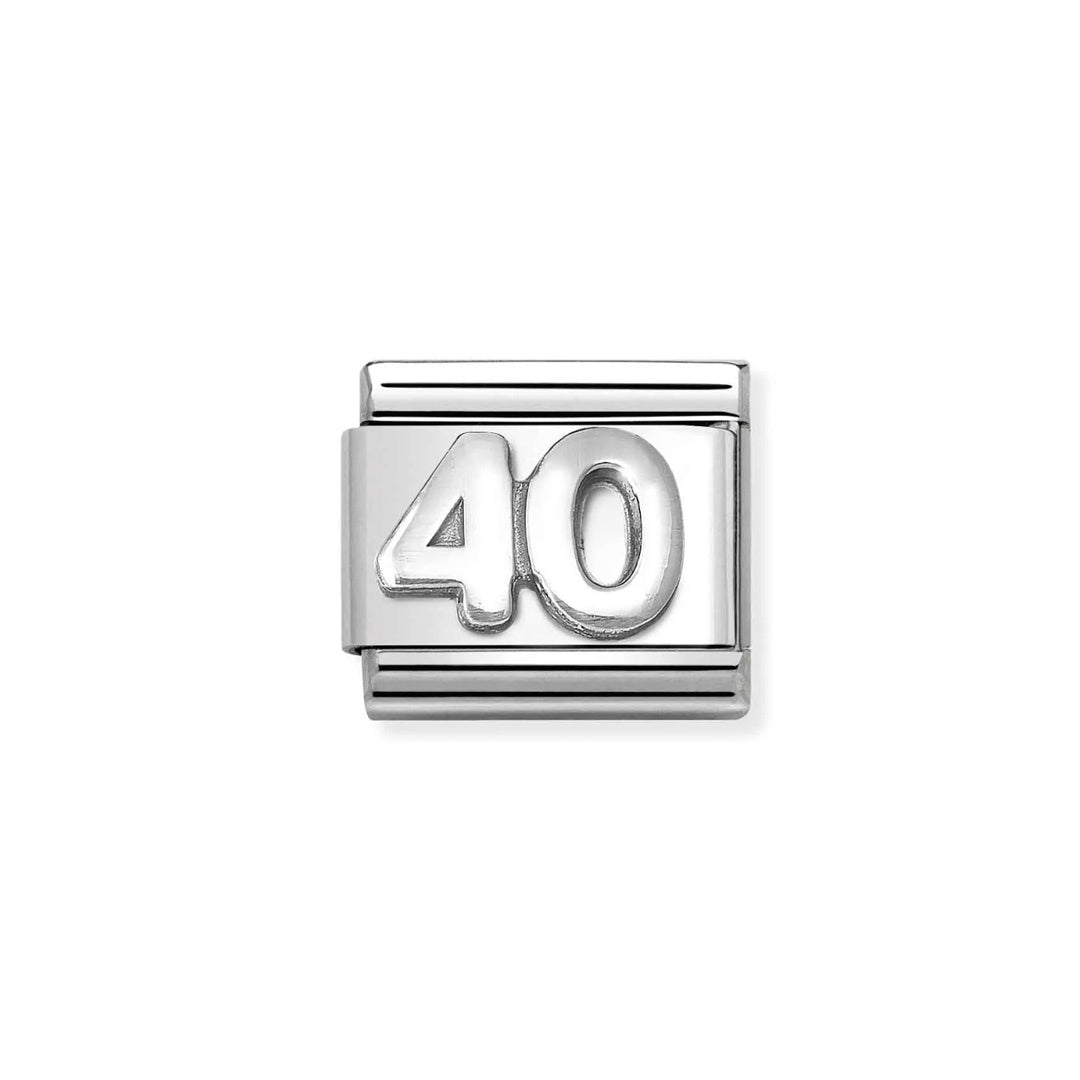 Original Nomination Link for Composable Classic Bracelets in stainless steel and sterling silver with oxidized vintage effect with Number 40 symbol. Made in Italy. The Composable Collection adds another dimension to its DNA with the new Silvershine numbers in sterling silver: Genderless and at a very accessible price; perfect to celebrate a Milestone as important as 40!