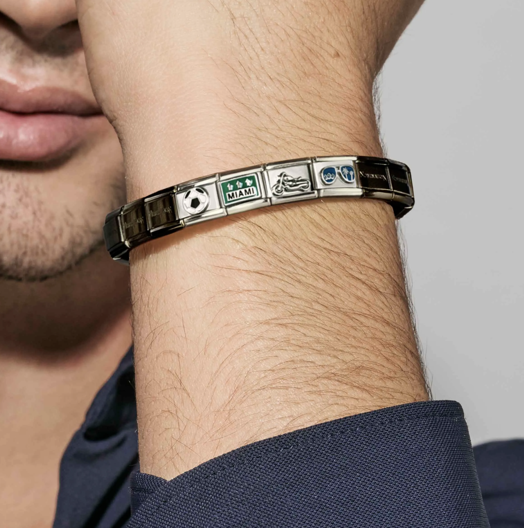 Original Nomination Classic Link in stainless steel and sterling silver with vintage effect on Tennis Rackets symbol. Made in Italy. If you love tennis then this Link is a Must Have for you!