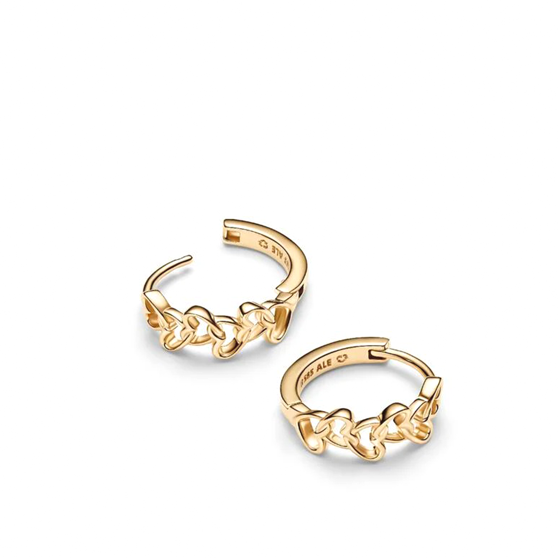 Your love never fades – and neither will these solid 14k gold hoop earrings. Detailed with interlocking hearts, they symbolize an enduring connection.