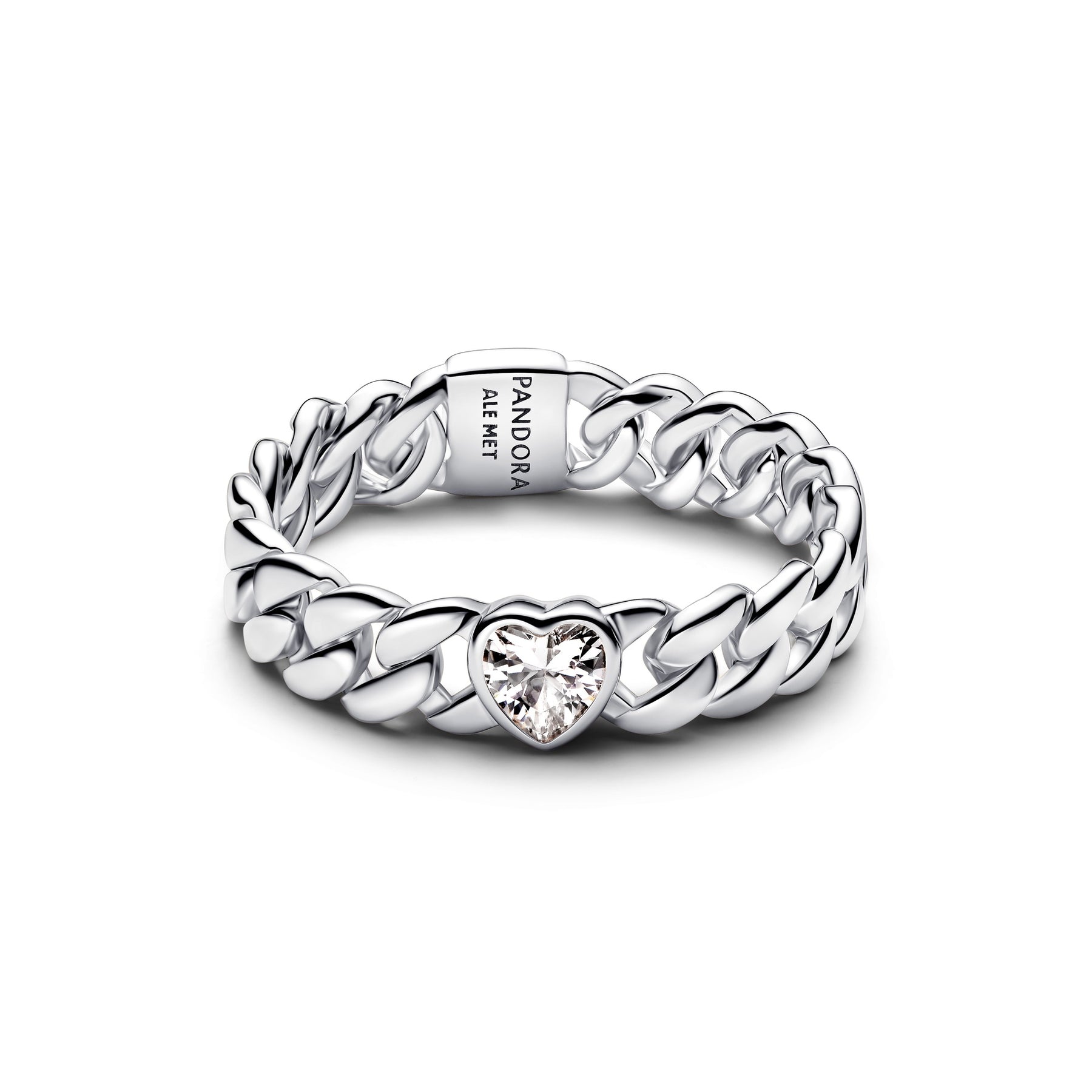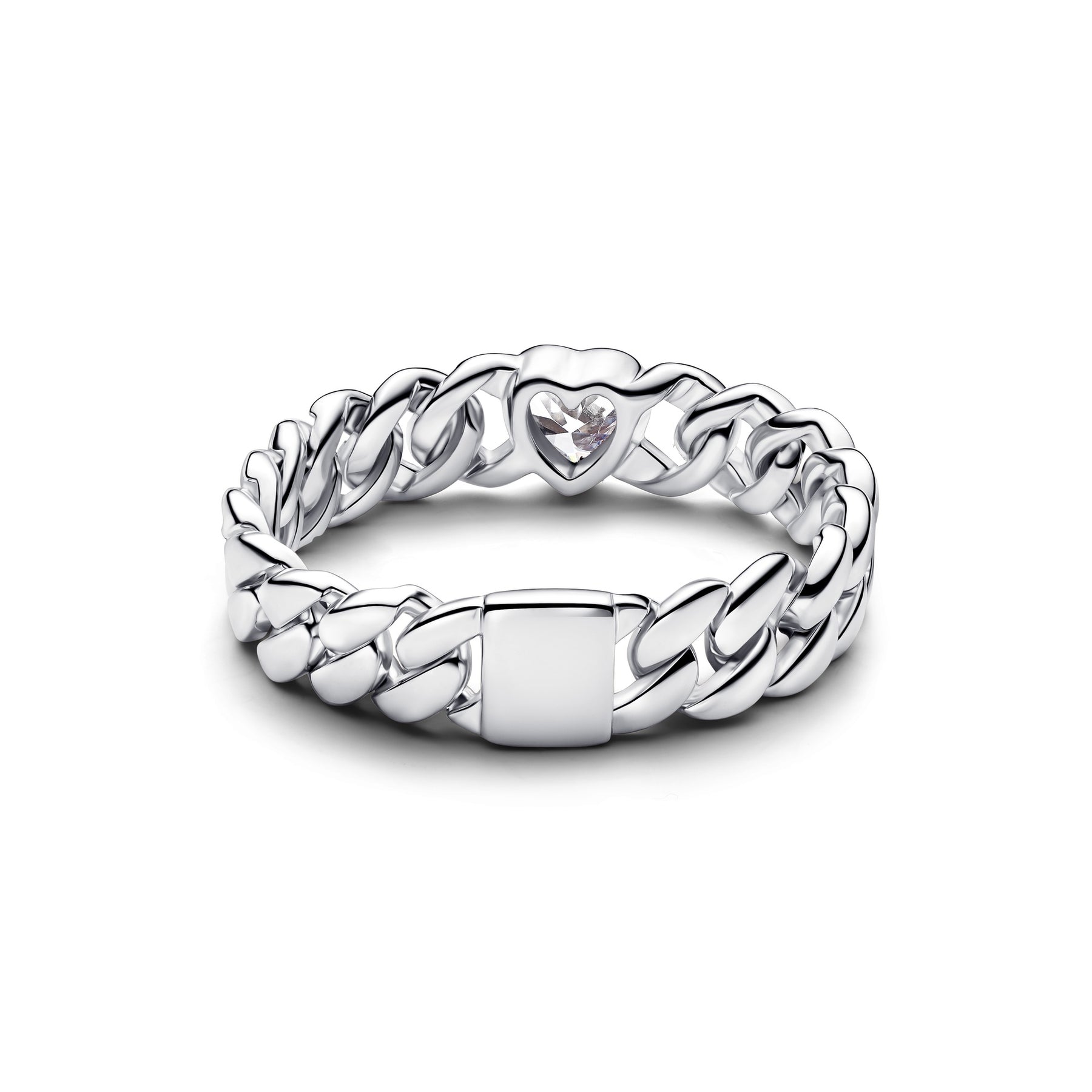 Go for bold. Our 14k gold-plated or sterling silver Cuban chain ring features one bezel-set heart-shaped cubic zirconia, blending modern romance with effortless edge.