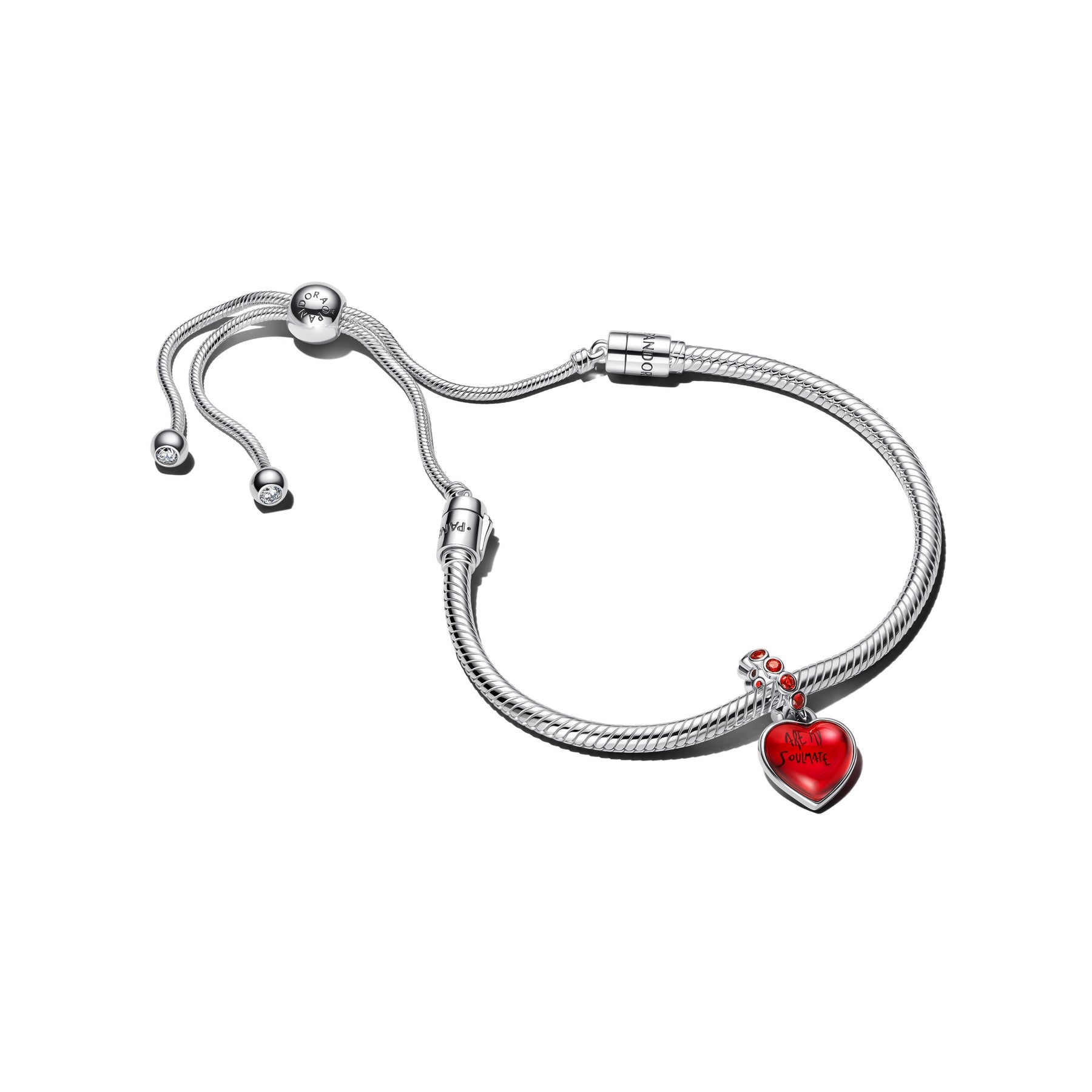 For the one who holds your heart. A fiery red charm engraved with “You are my soulmate” paired with a sterling silver bracelet. Made to carry your connection, always close.