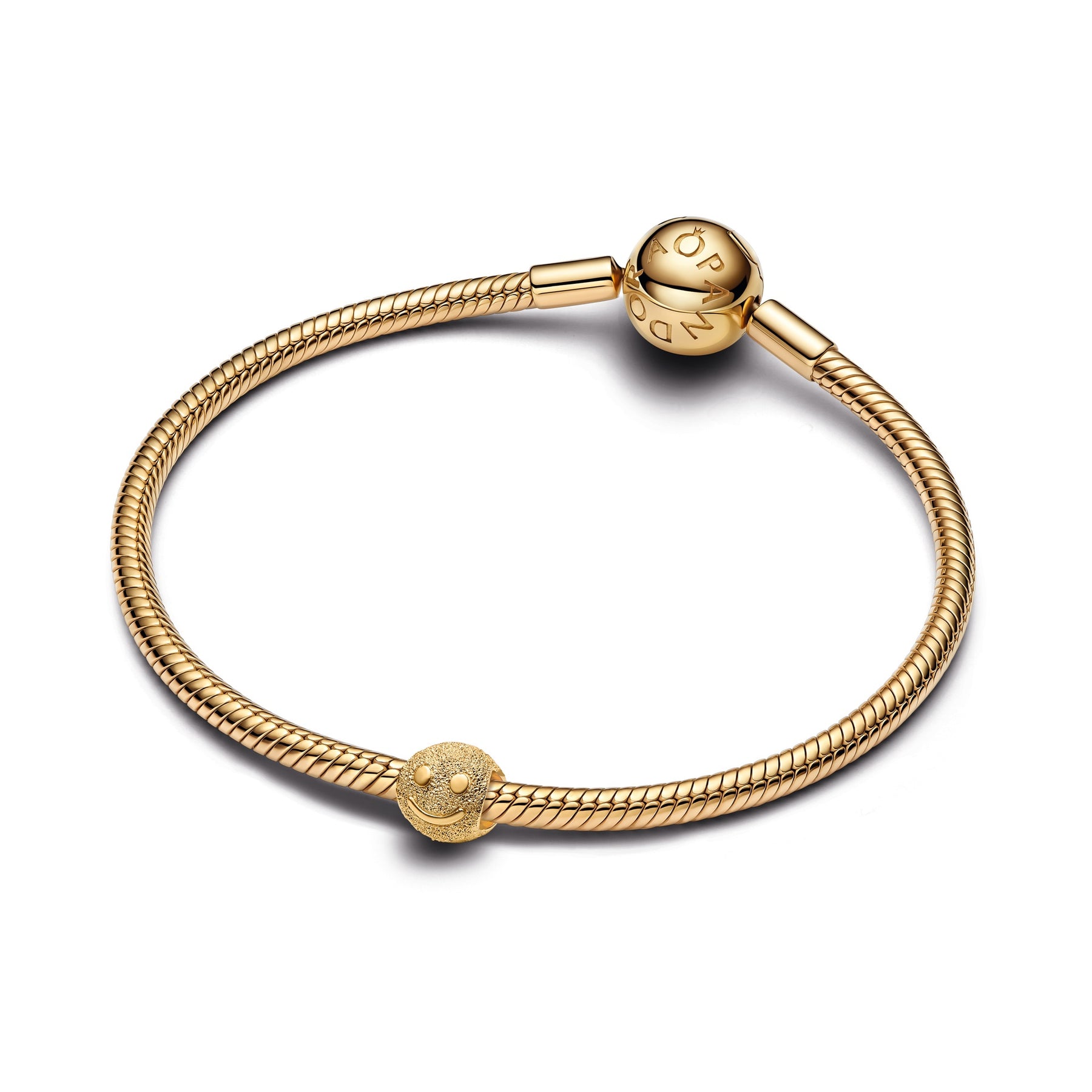 Spark joy in the smallest way. This 14k gold-plated mini charm features a textured happy face with a diamond-point finish, adding light-catching detail to your charm stack.