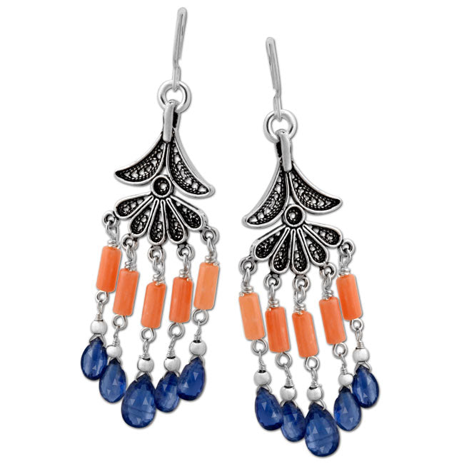 Pink Coral & Kyanite in Sterling Silver Earrings