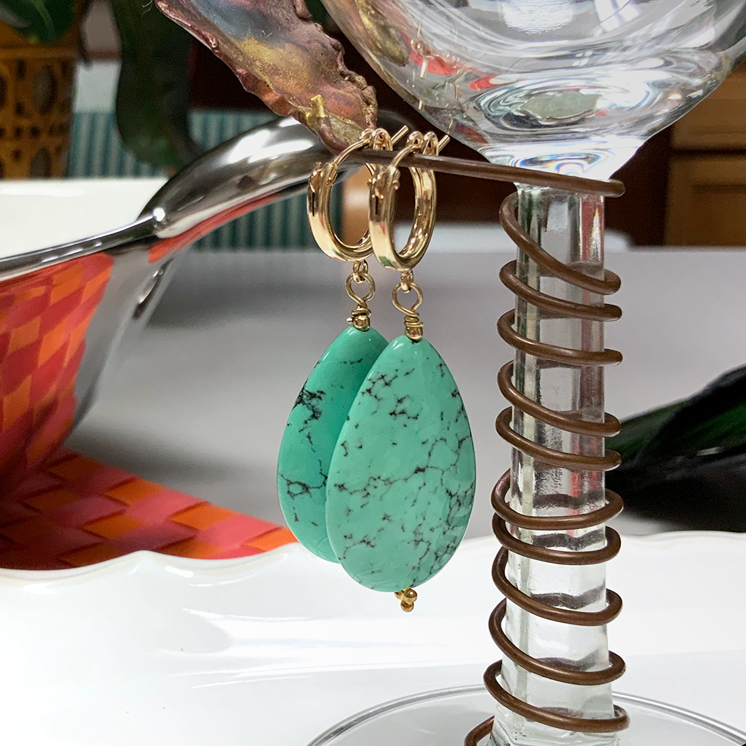 Green turquoise teardrop earrings on 14k gold-filled hoops