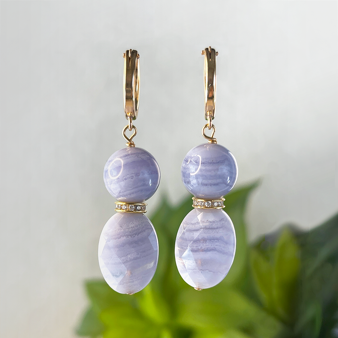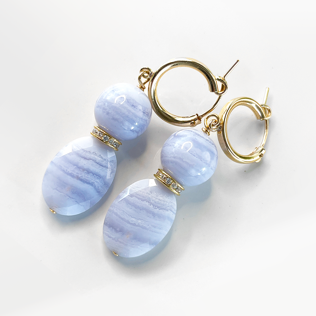Blue lace agate earrings with 14kt gold-fill / cubic zirconia rondelles. 14kt gold-fill hoops.
