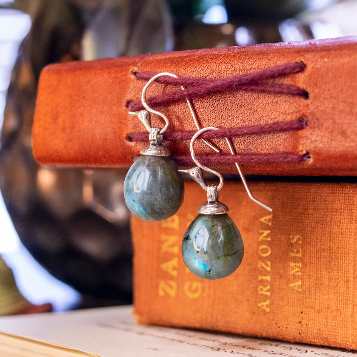 Sterling silver or 22KT Gold Vermeil with pear shaped labradorite on bird wires.