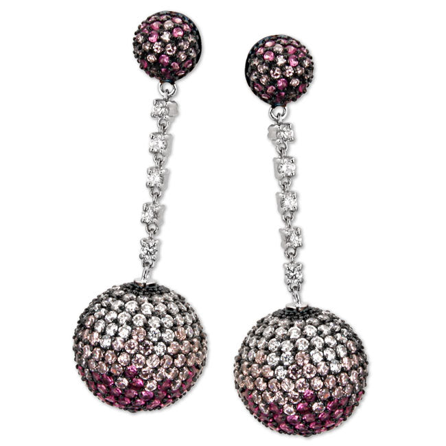 Rose/Pink & Clear Cubic Zirconia Spherical Dangle Bling Sterling Silver Earrings.