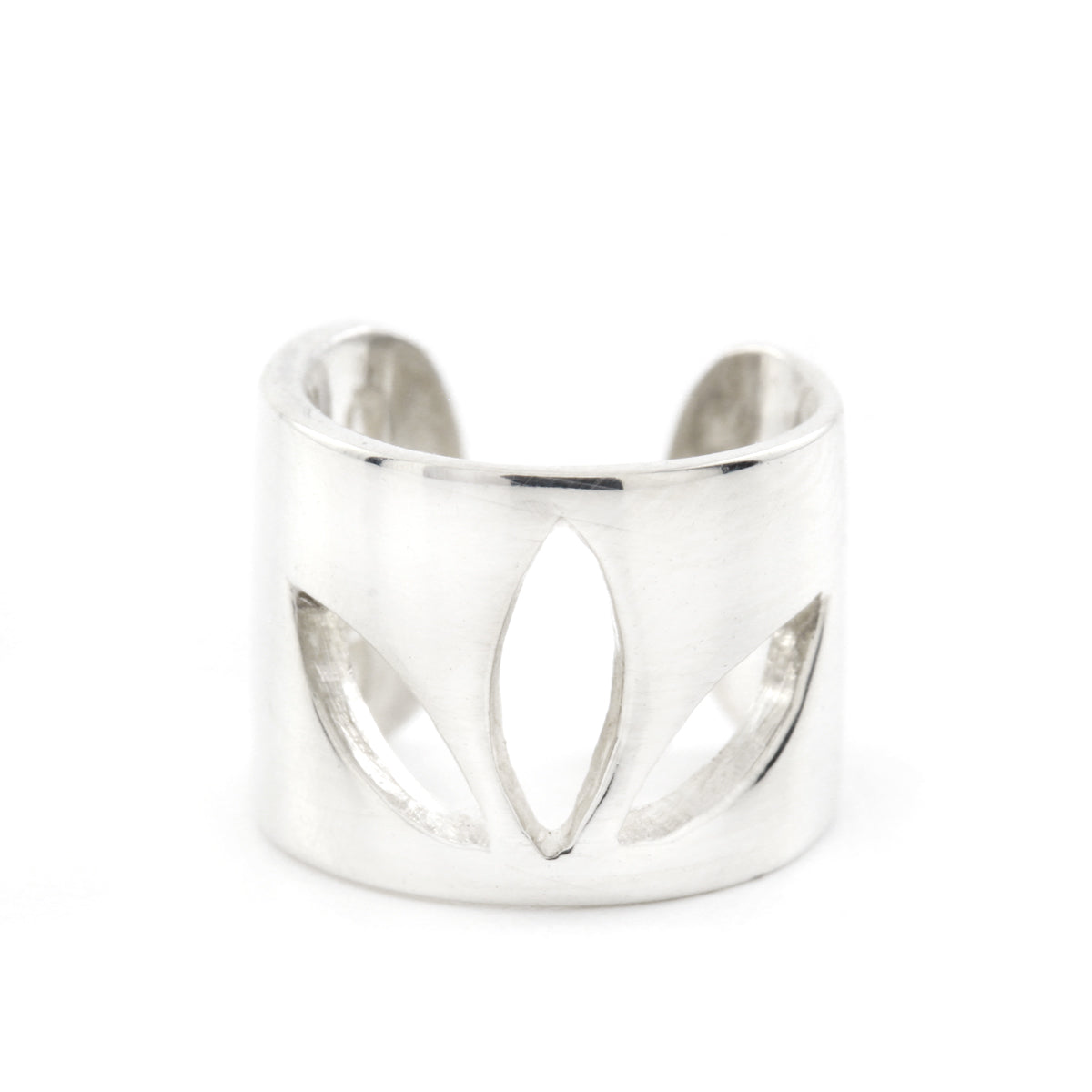 This Roulette 18 Flower Cutout Ear Cuff is a fun way to update your look featuring a flower cutout design in sterling silver.