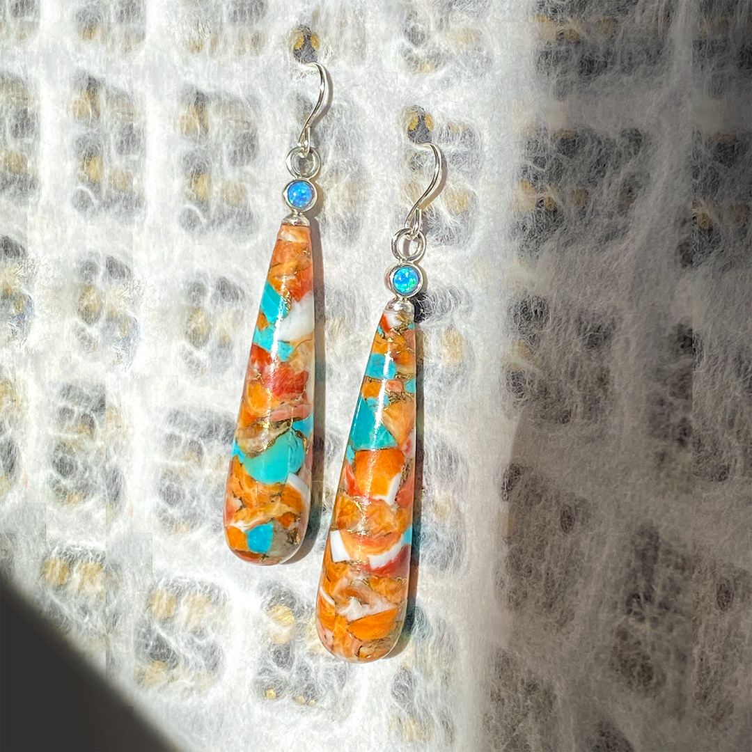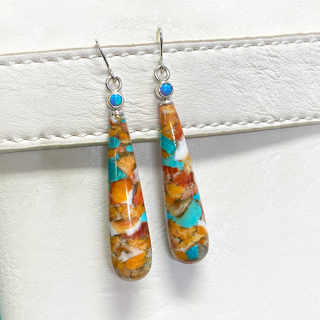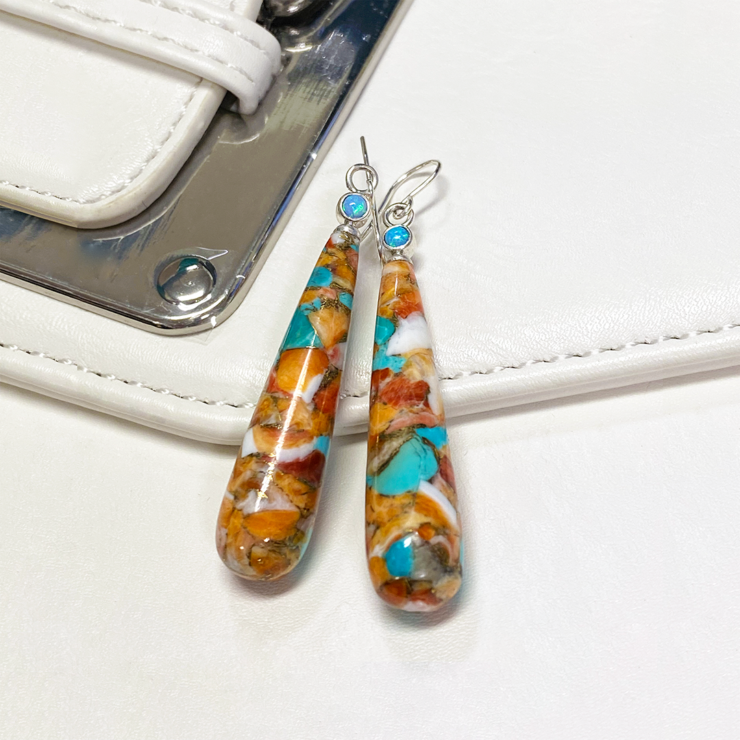 Spiny Oyster, White Mother of Pearl & Turquoise Earrings