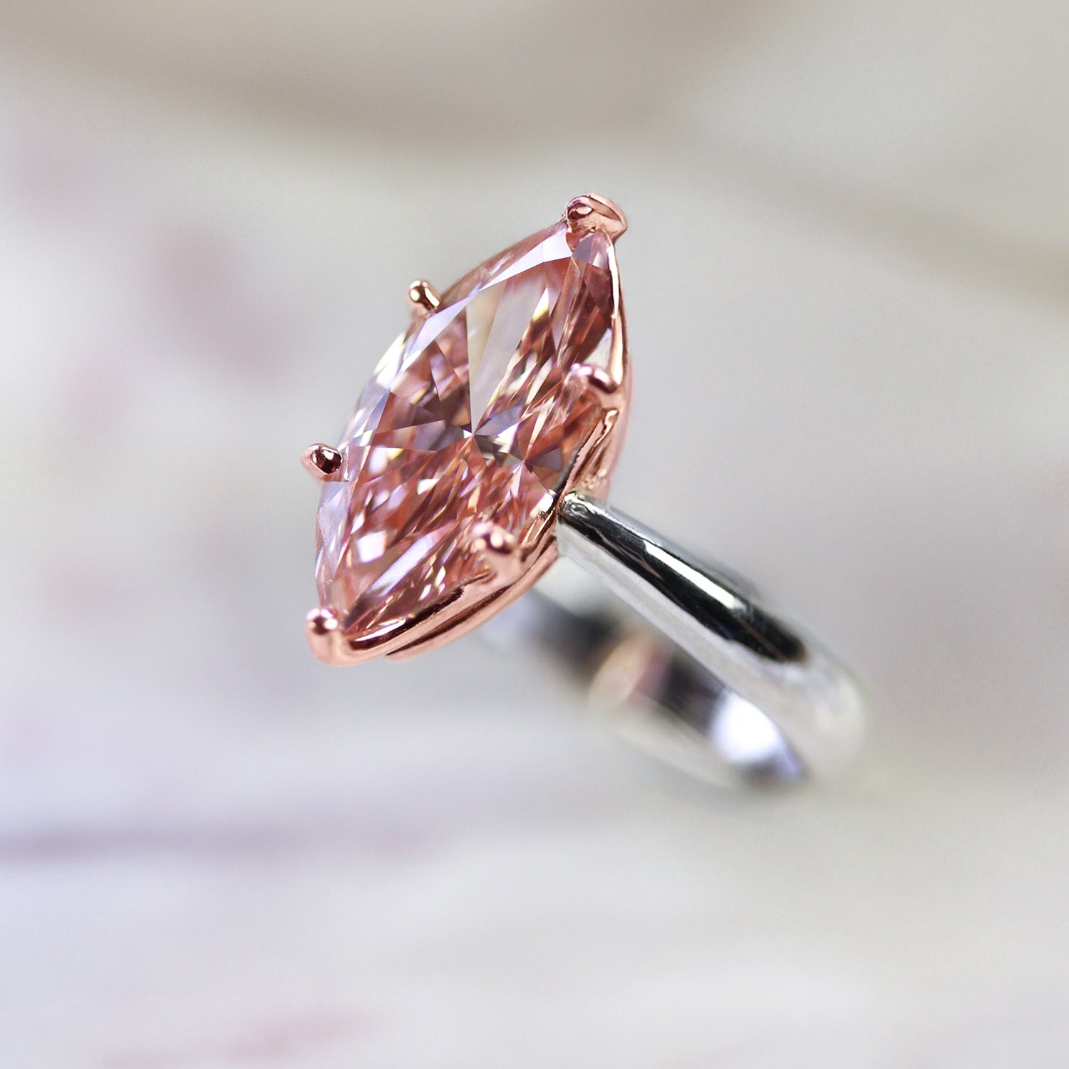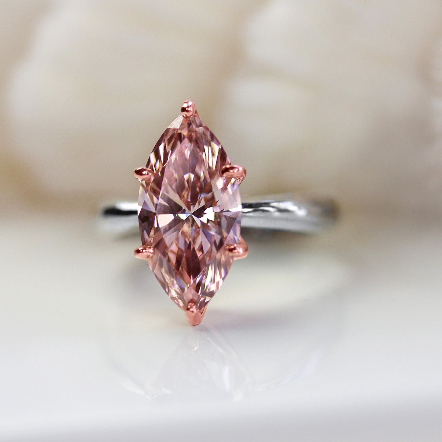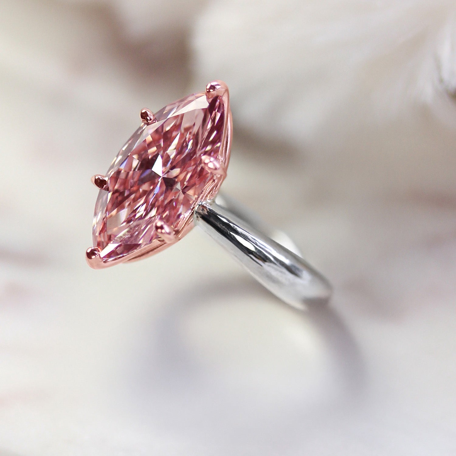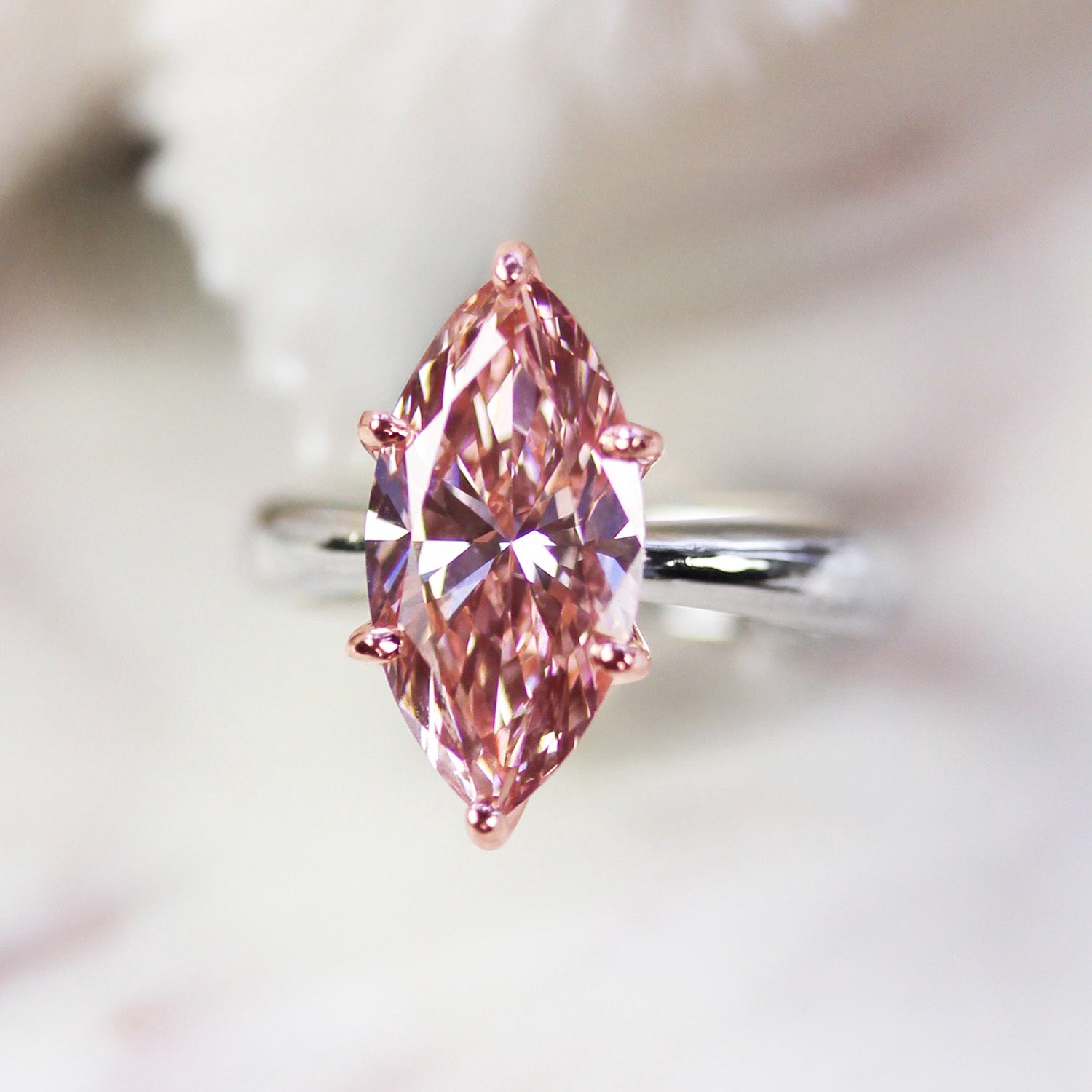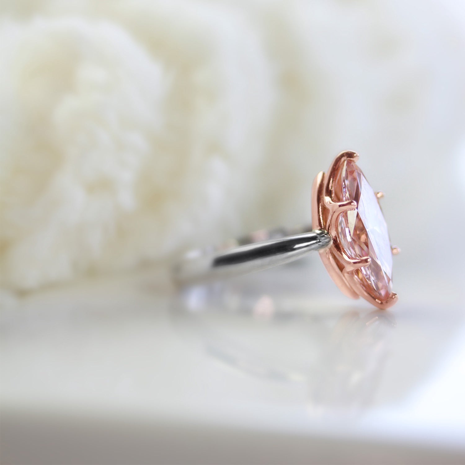14kt White/Rose Marquise Setting 16.32 x 8 .24mm EX Ex Ex LGD