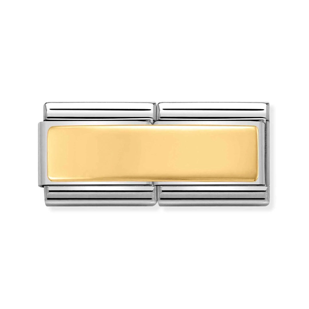 Original Nomination charm with new Double Link in bonded yellow gold for Composable bracelet. Made in Italy. Engrave your message on this special charm of "Love Stories" Collection.