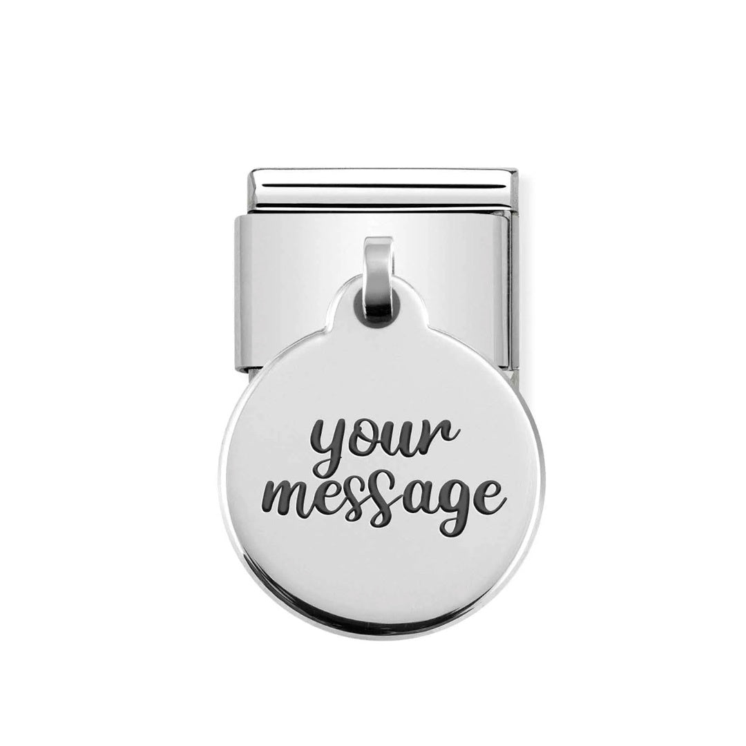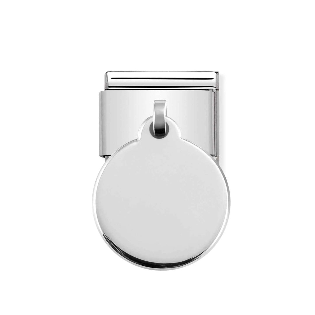 Original Composable Charm for the Classic size bracelet in stainless steel with round pendant in sterling silver. Made in Italy. Inscribe this Charm with your name or with a date that has special meaning.