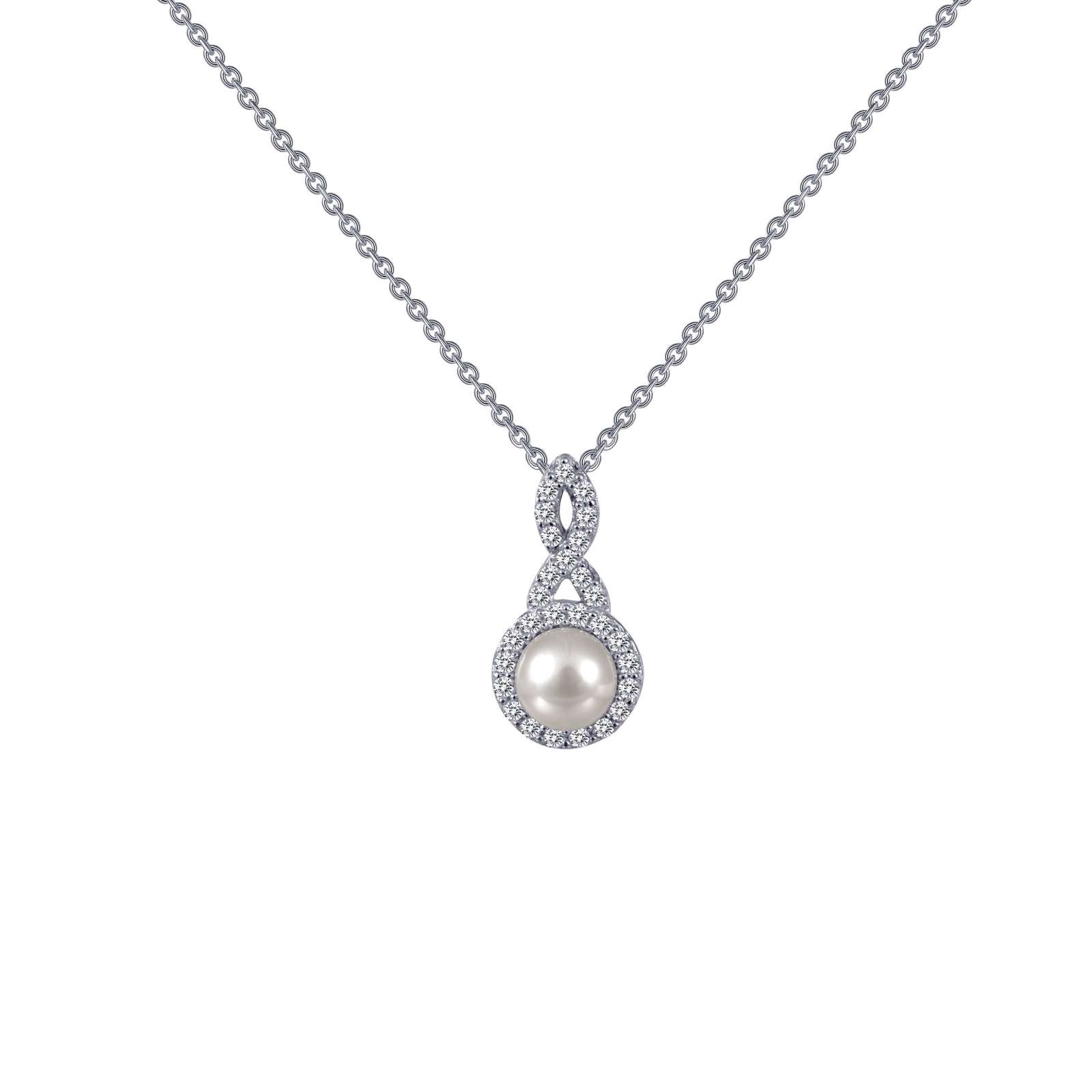 Elegant and sophisticated. This cultured freshwater pearl pendant is set with Lafonn's signature Lassaire simulated diamonds in sterling silver bonded with platinum. The pendant comes on an adjustable 18" chain.