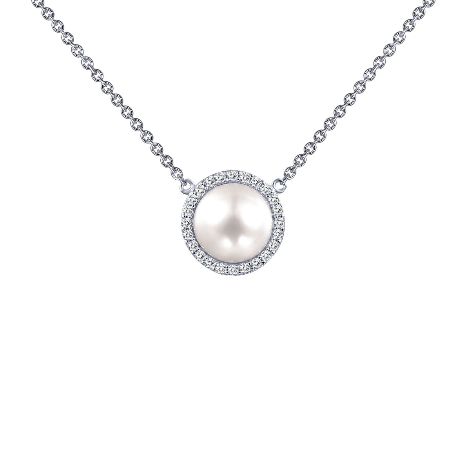 Elegant and sophisticated. This cultured freshwater pearl necklace is set with Lafonn's signature Lassaire simulated diamonds in sterling silver bonded with platinum.