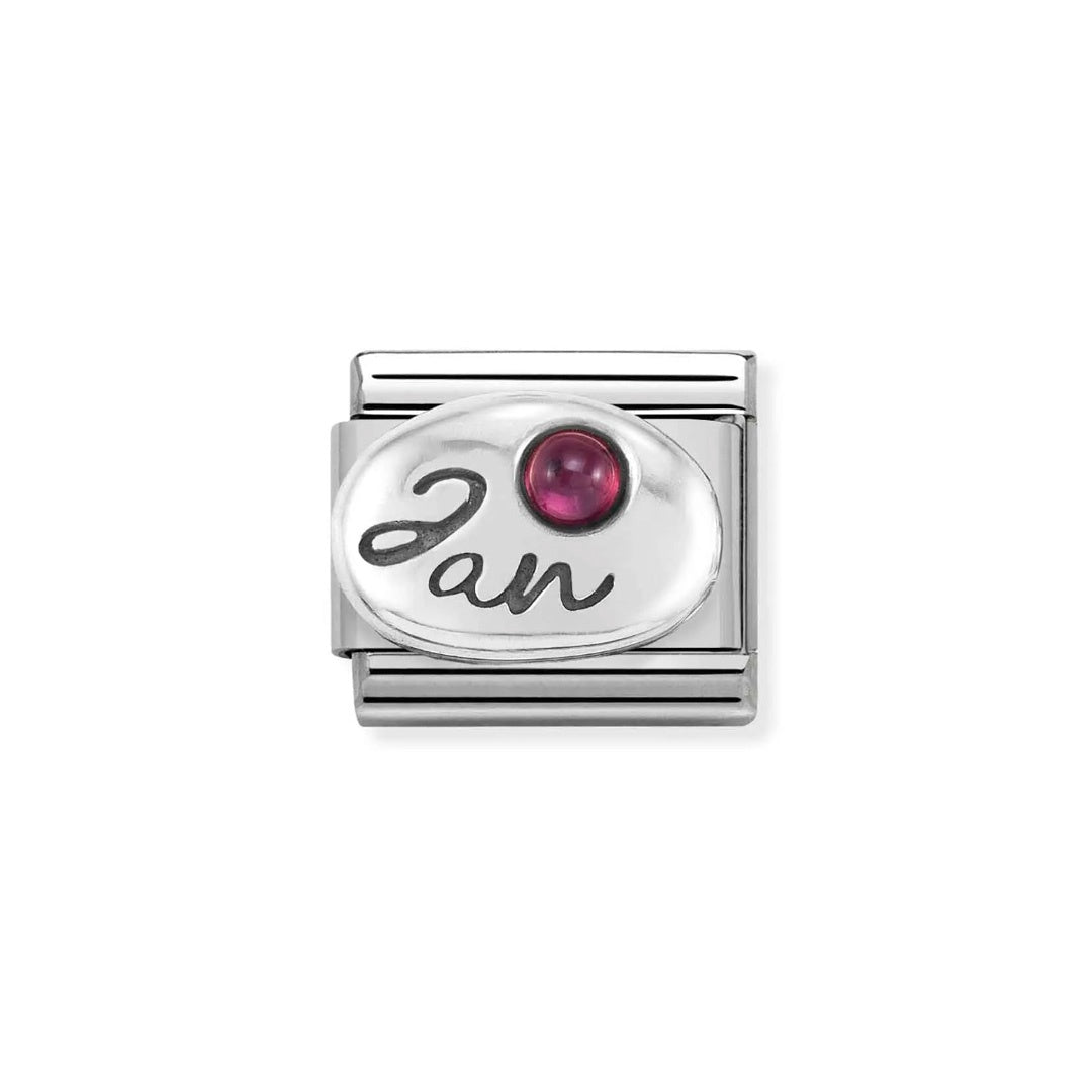 Charm for the original Composable Classic bracelet in stainless steel, sterling silver and Garnet. Made in Italy. The perfect Charm to complete your birthstone collection.