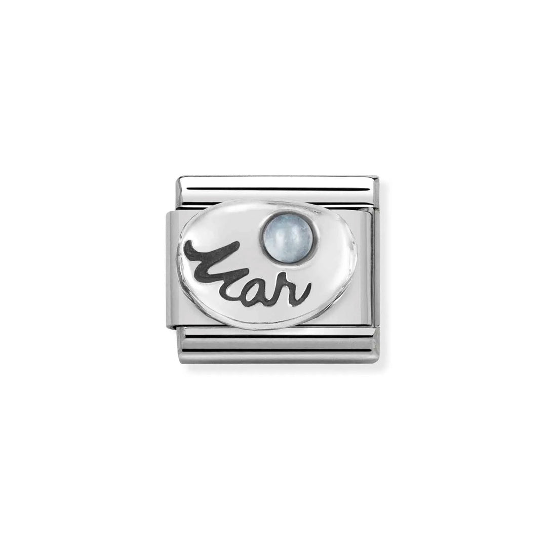 Charm for the original Composable Classic bracelet in stainless steel, sterling silver and Aquamarine. Made in Italy. A Charm with March's birthstone.