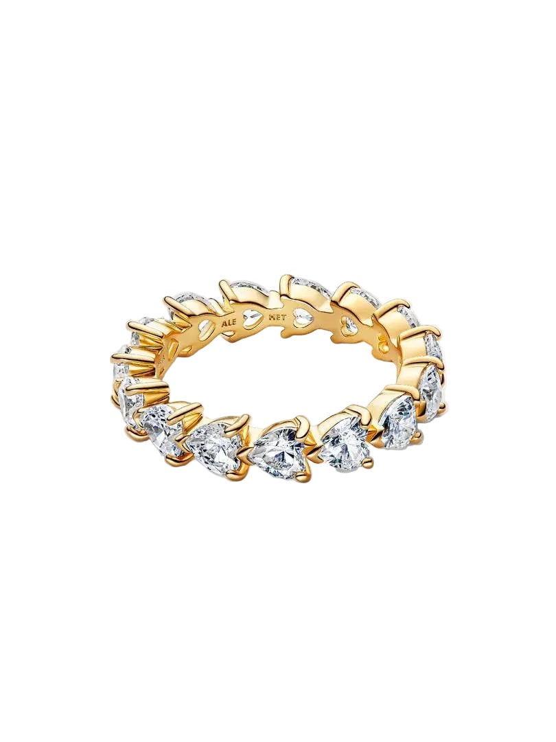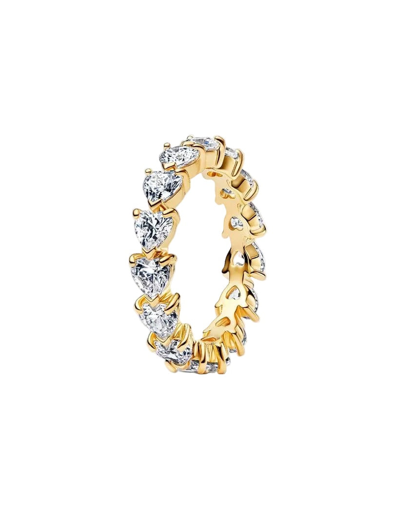 A wearable symbol of everlasting love. Heart-shaped stones and V-shaped prongs repeat to create this sparkling eternity ring: a contemporary take on the classic setting.