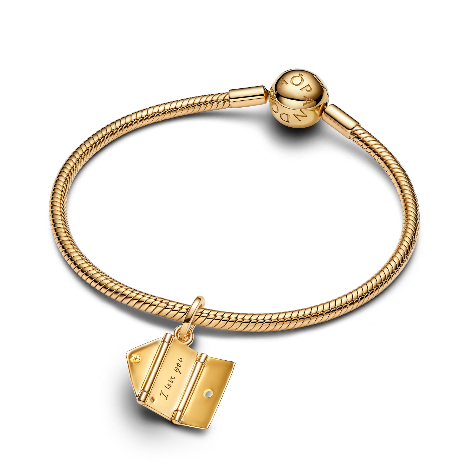 Send a little love. This 14k gold-plated openable envelope dangle sparkles with clear cubic zirconia and offers engravable space inside and on the front – perfect for heartfelt messages.