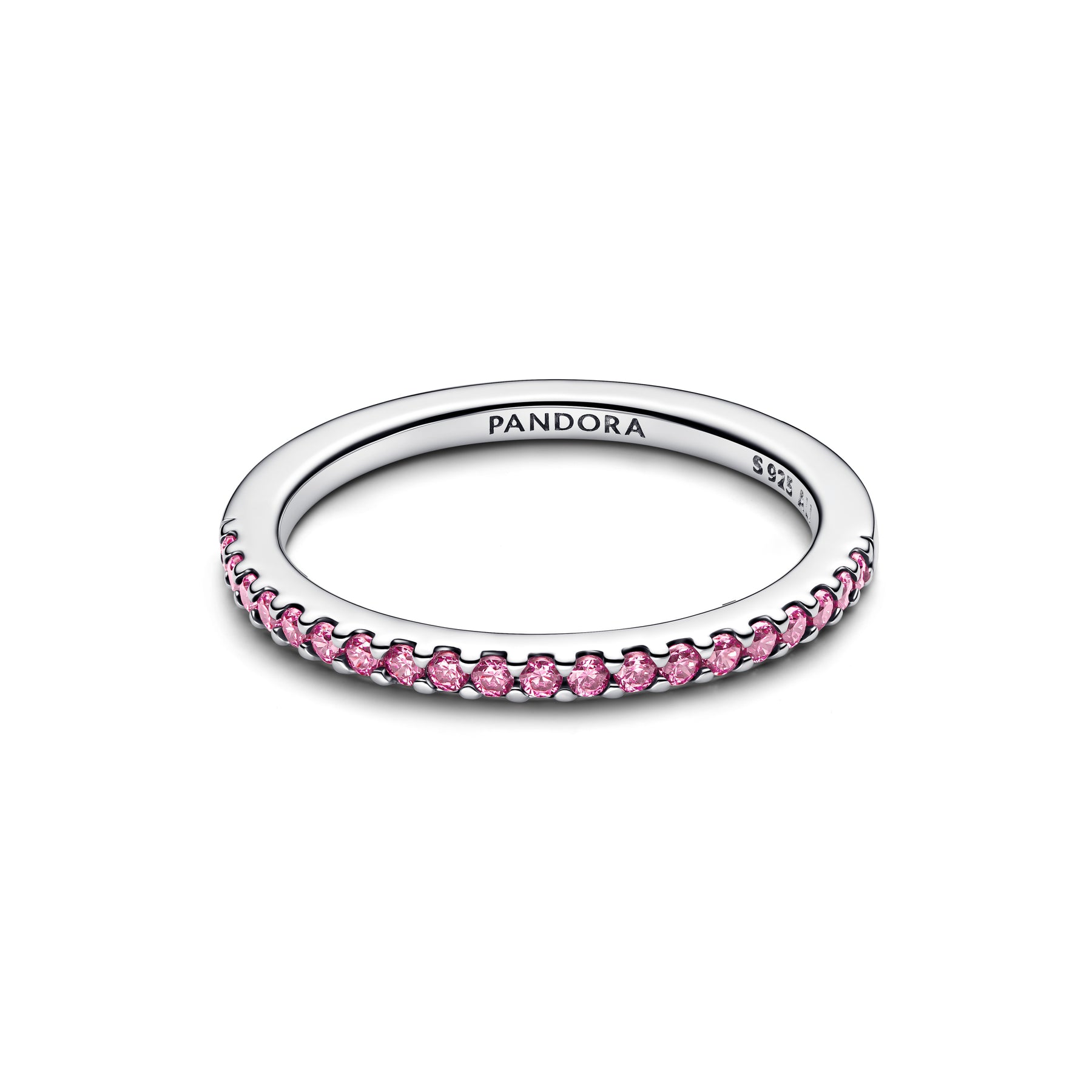 Endless shine for your endless love. This sterling silver band is set with pink cubic zirconia all the way around, symbolising connection that never ends and brilliance from every angle.