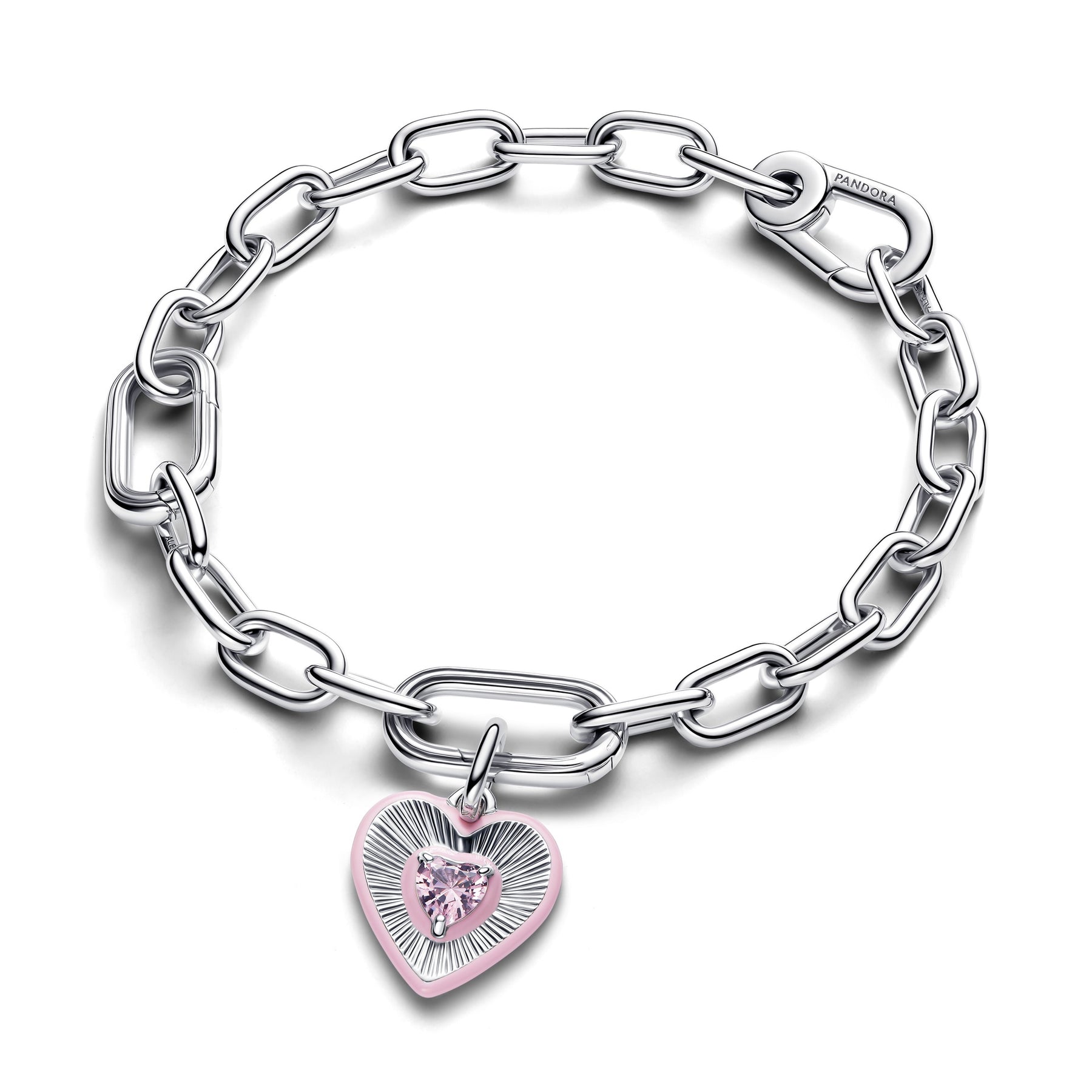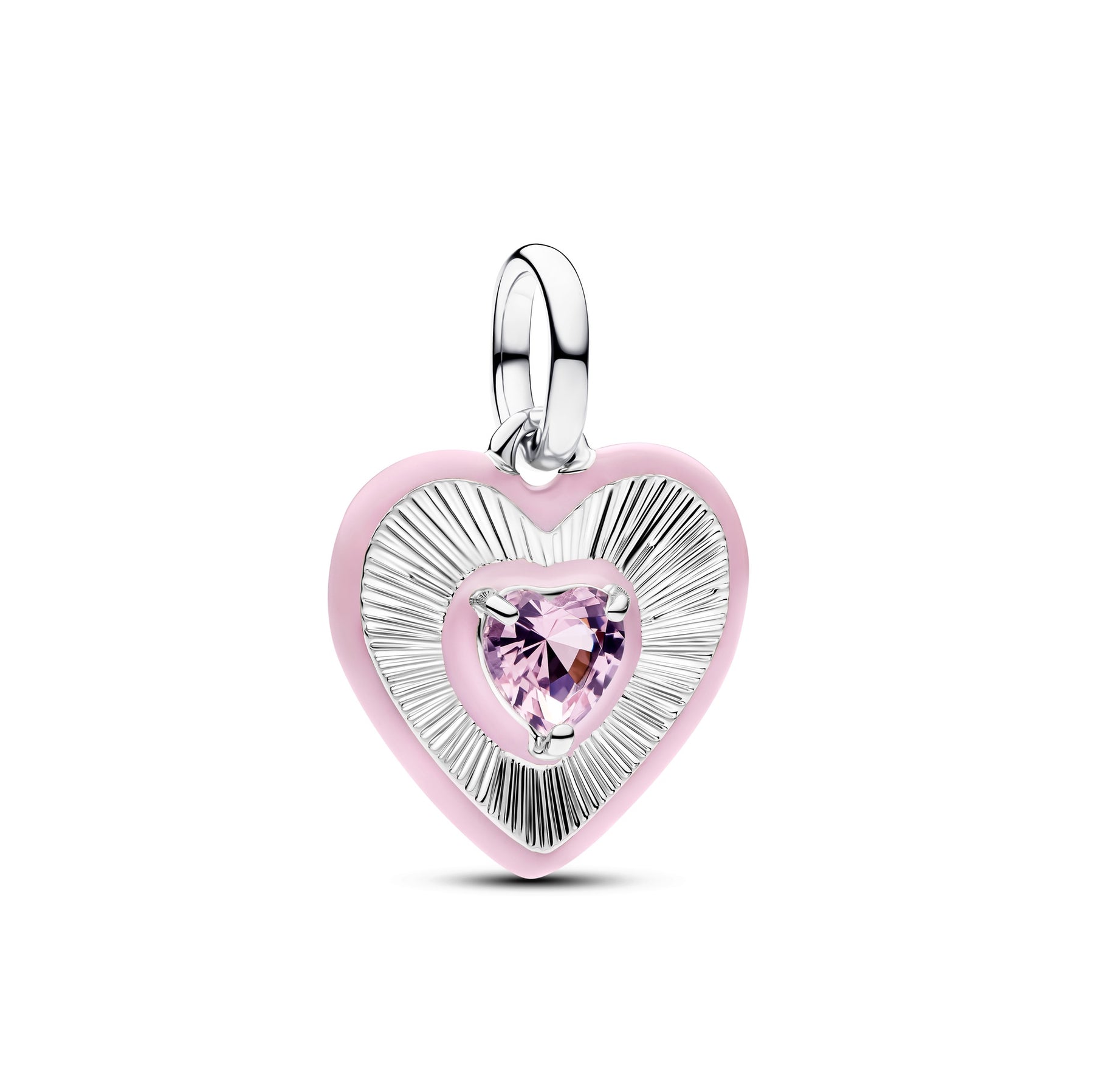 Shine from within. This sterling silver medallion charm features a pink heart-shaped crystal framed in enamel, with a dual-sided design symbolising love’s inner light.