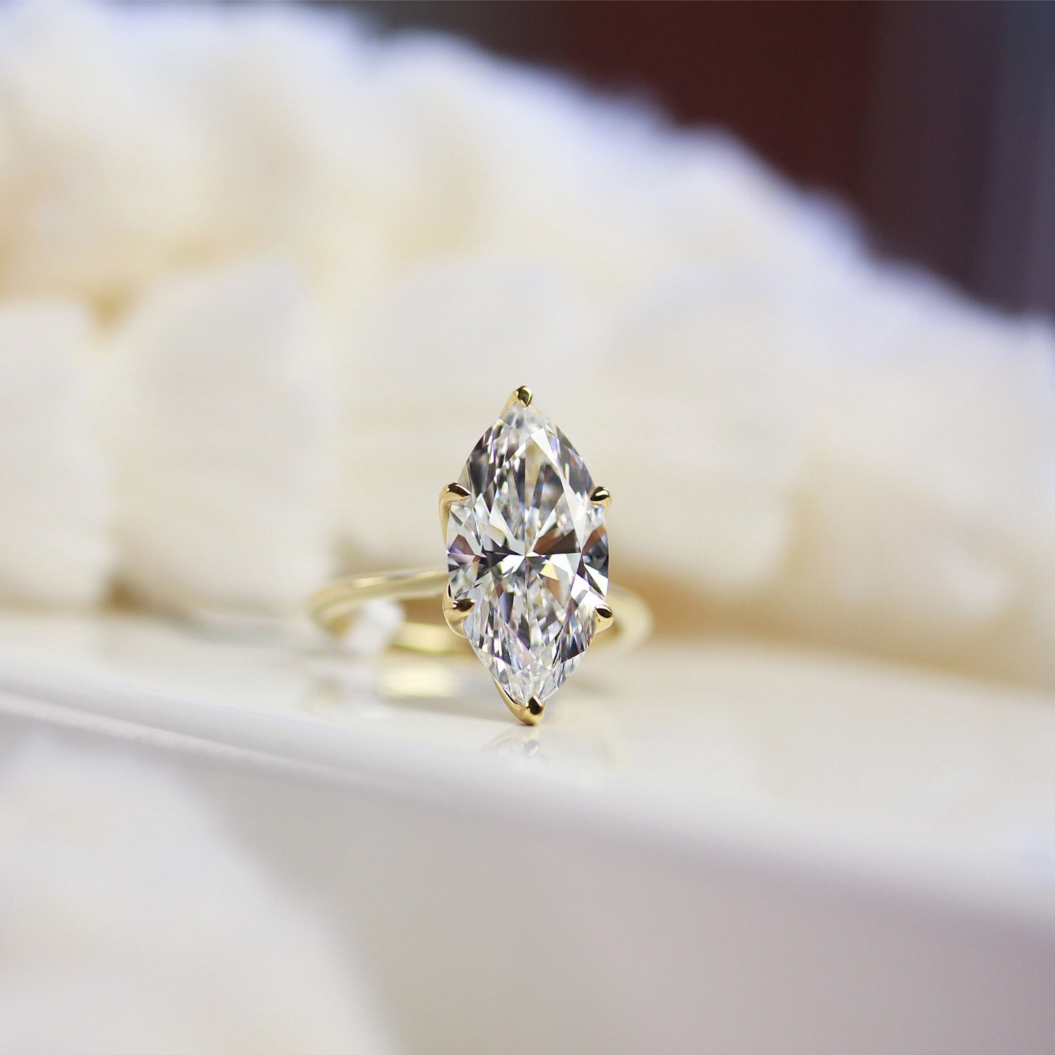 5.81 CT, MQ, E, VS1 LGD Center, 14KY 14 RD .03 CT Solitaire Ring