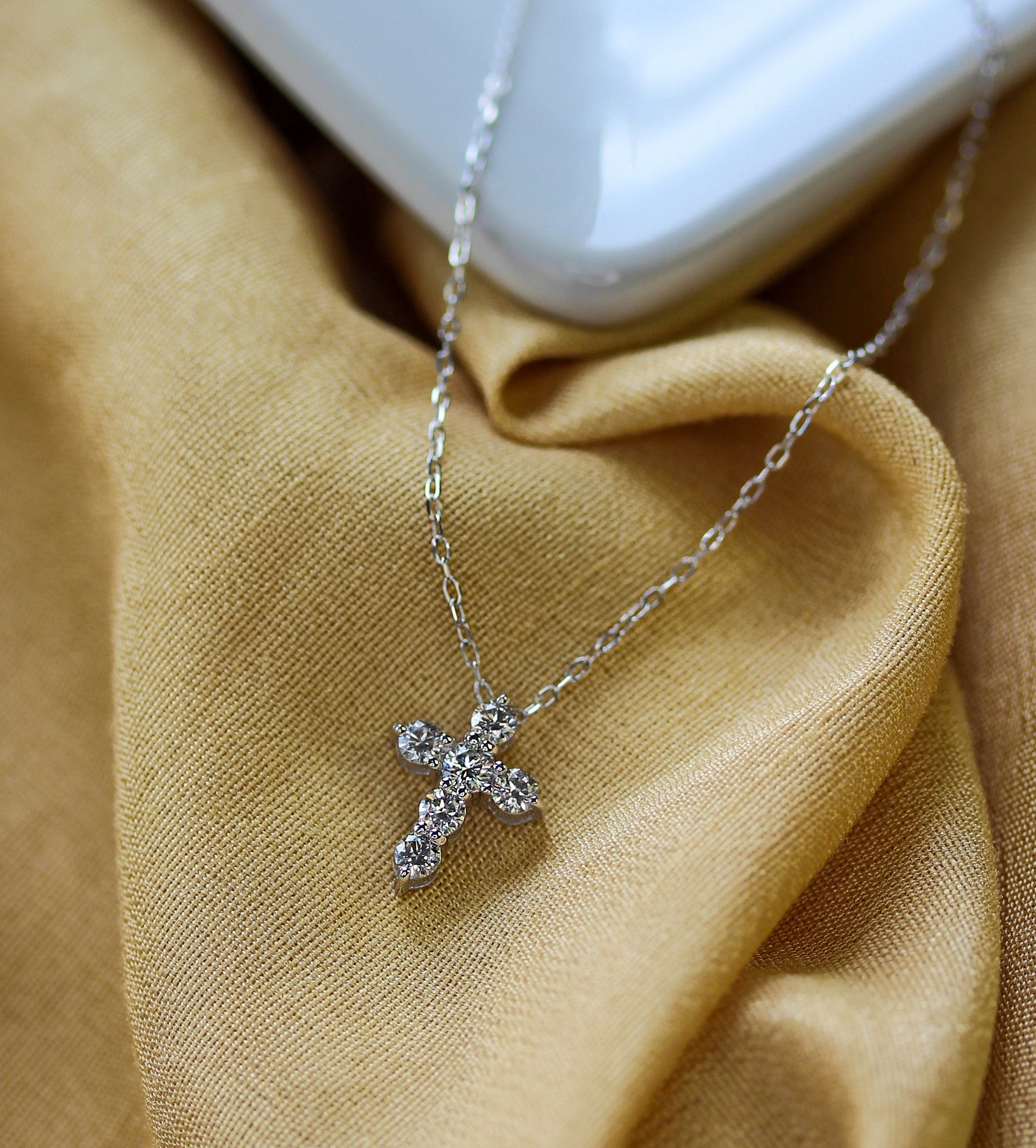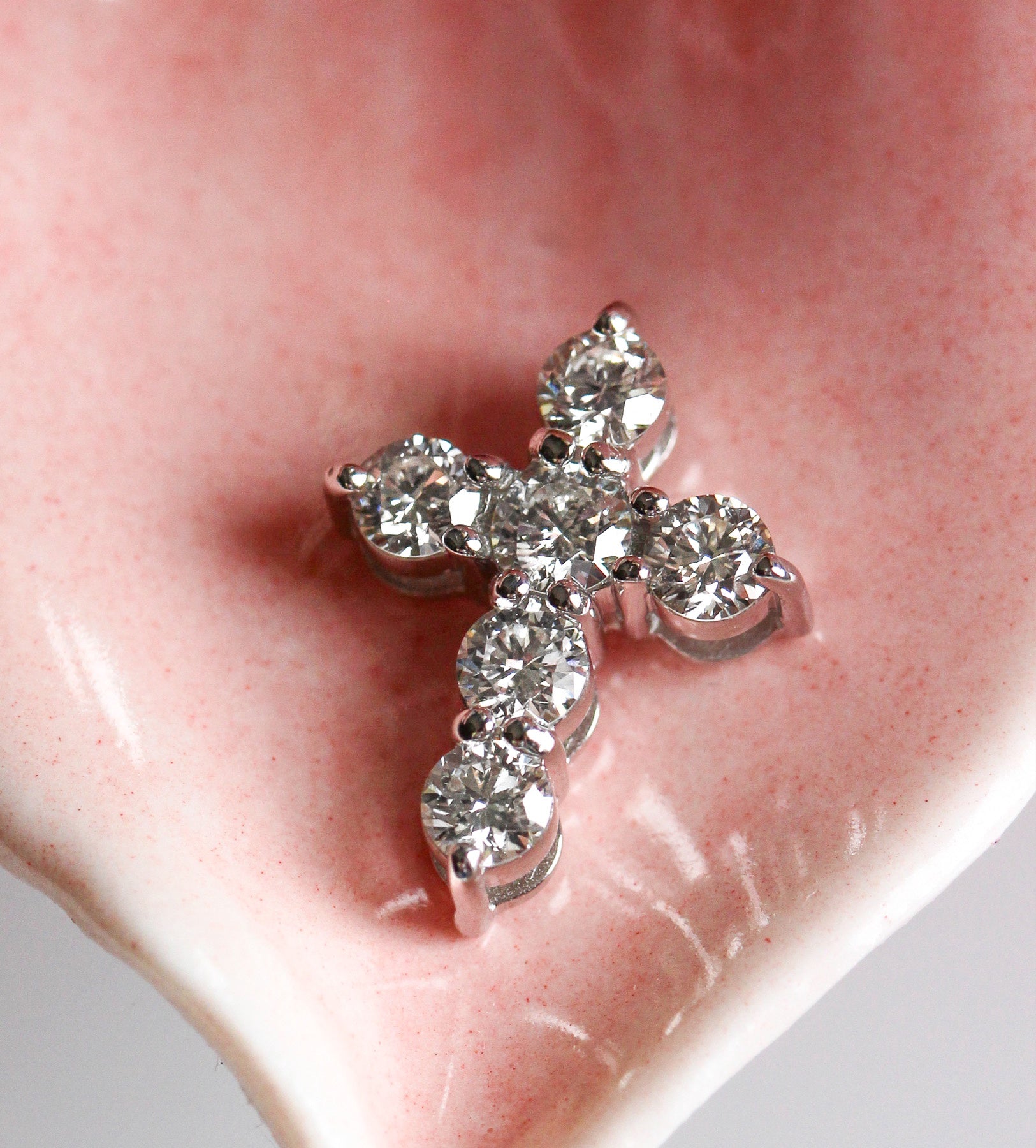 The classic cross silhouette is refined and balanced, making it meaningful yet modern — perfect for everyday wear or special occasions. Its substantial diamond weight offers noticeable brilliance while maintaining a graceful, wearable size.