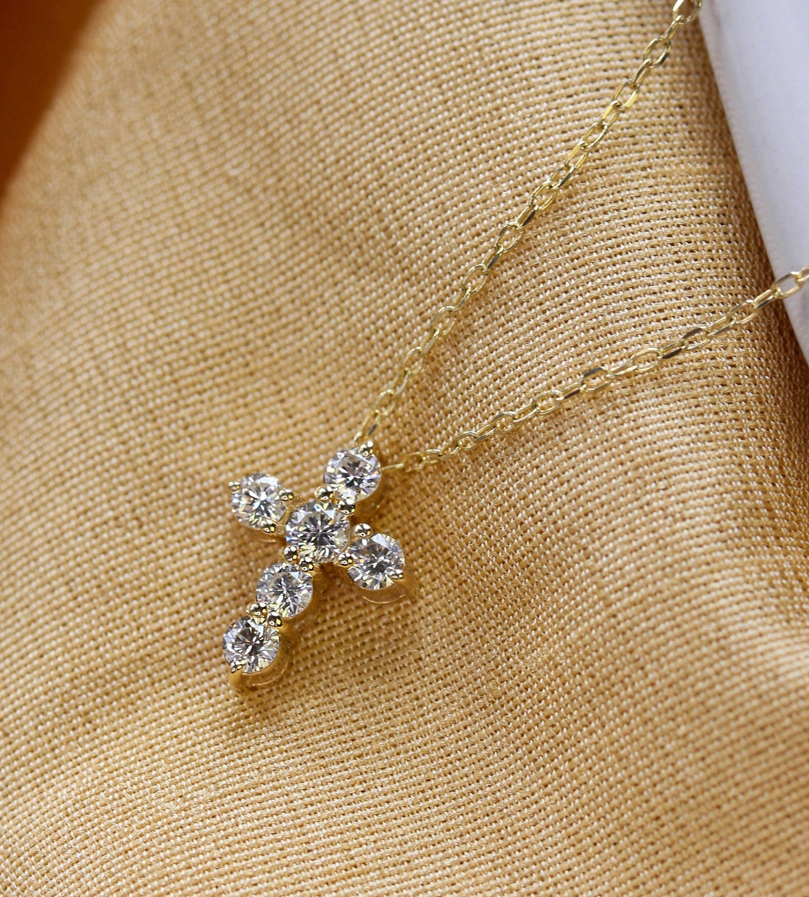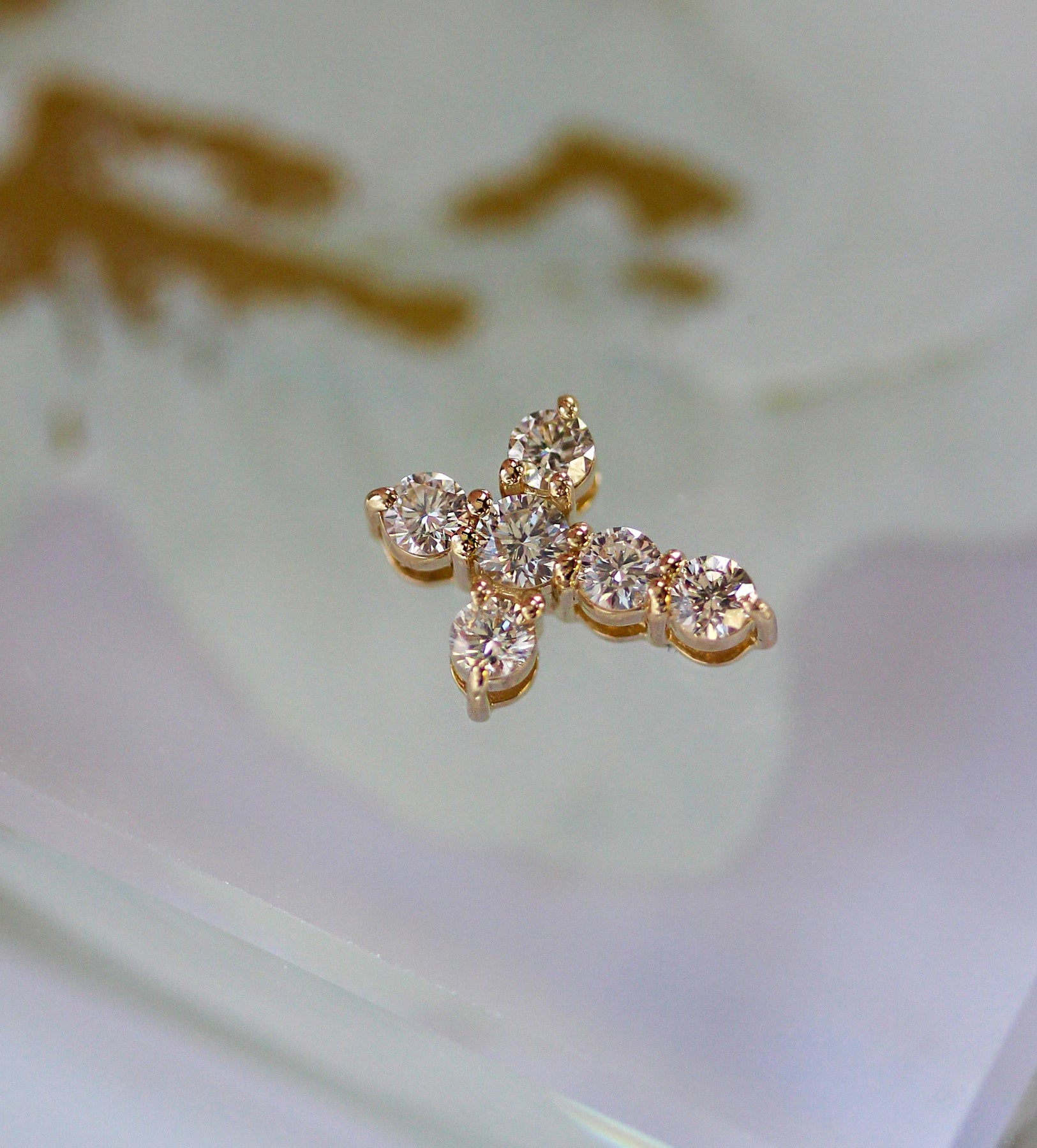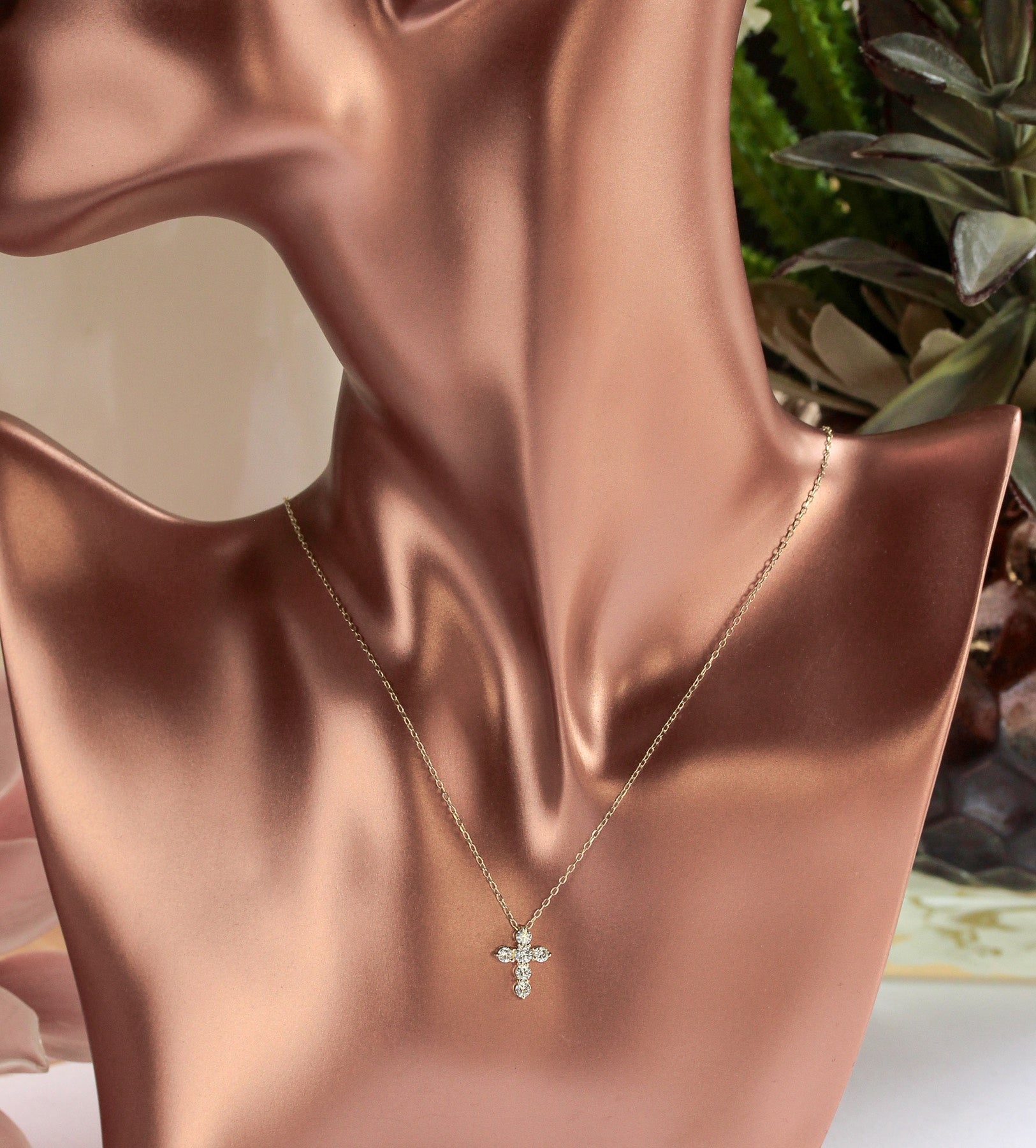 The classic cross silhouette is refined and balanced, making it meaningful yet modern — perfect for everyday wear or special occasions. Its substantial diamond weight offers noticeable brilliance while maintaining a graceful, wearable size.